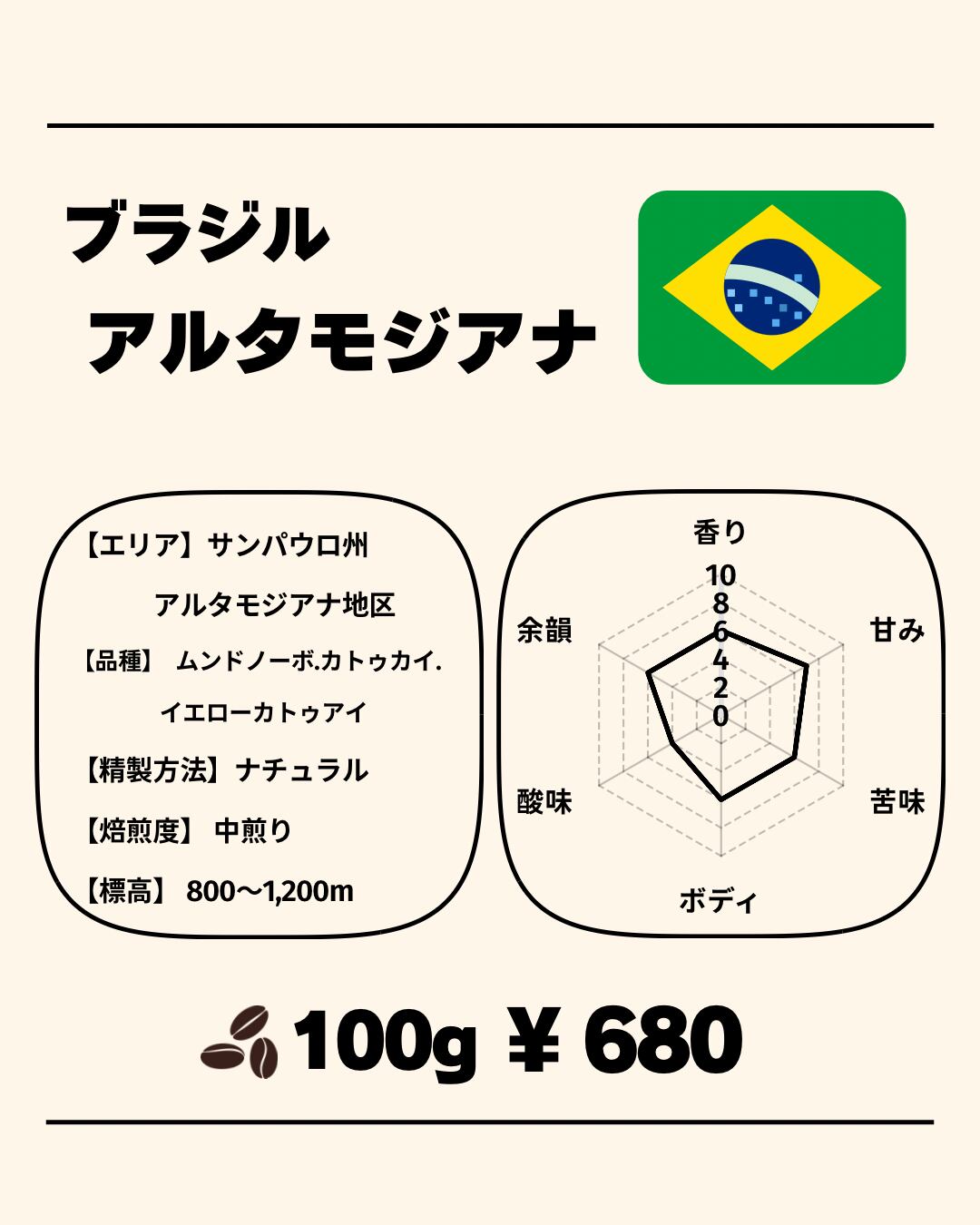 【100g】ブラジル アルタモジアナ【コーヒー豆/粉】